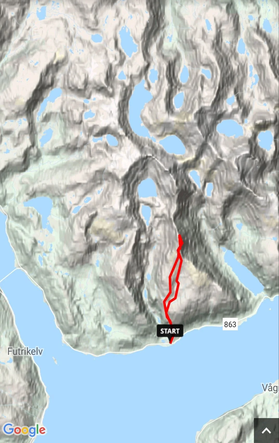 Ruten vi valgte i dag. Vi gikk opp på venstre spor, og kjørte ned på høyre spor i dalen.