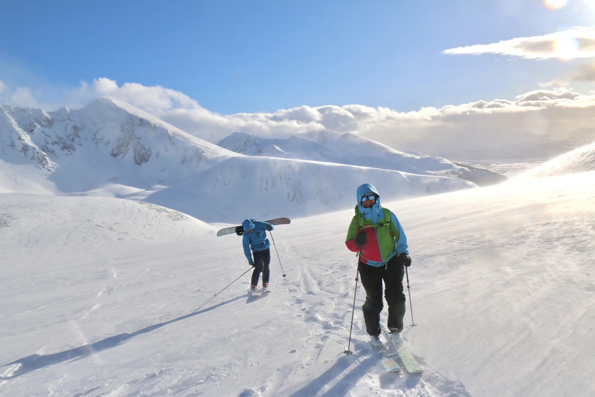 Sondre på truger og snowboard