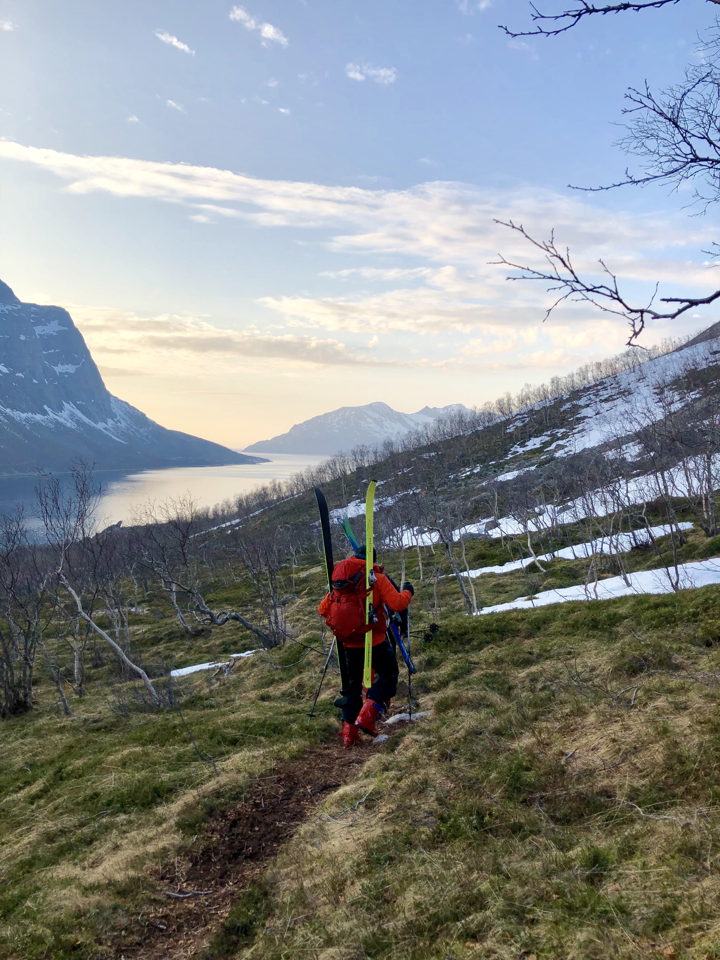 Det ble en positiv overraskelse at vi fant mer snø enn forventet. Hele flanken inn mot Breitinden hadde masse snø, men jeg ville likevel ikke ventet for lenge dersom du ønsker deg sammenhengende skikjøring.