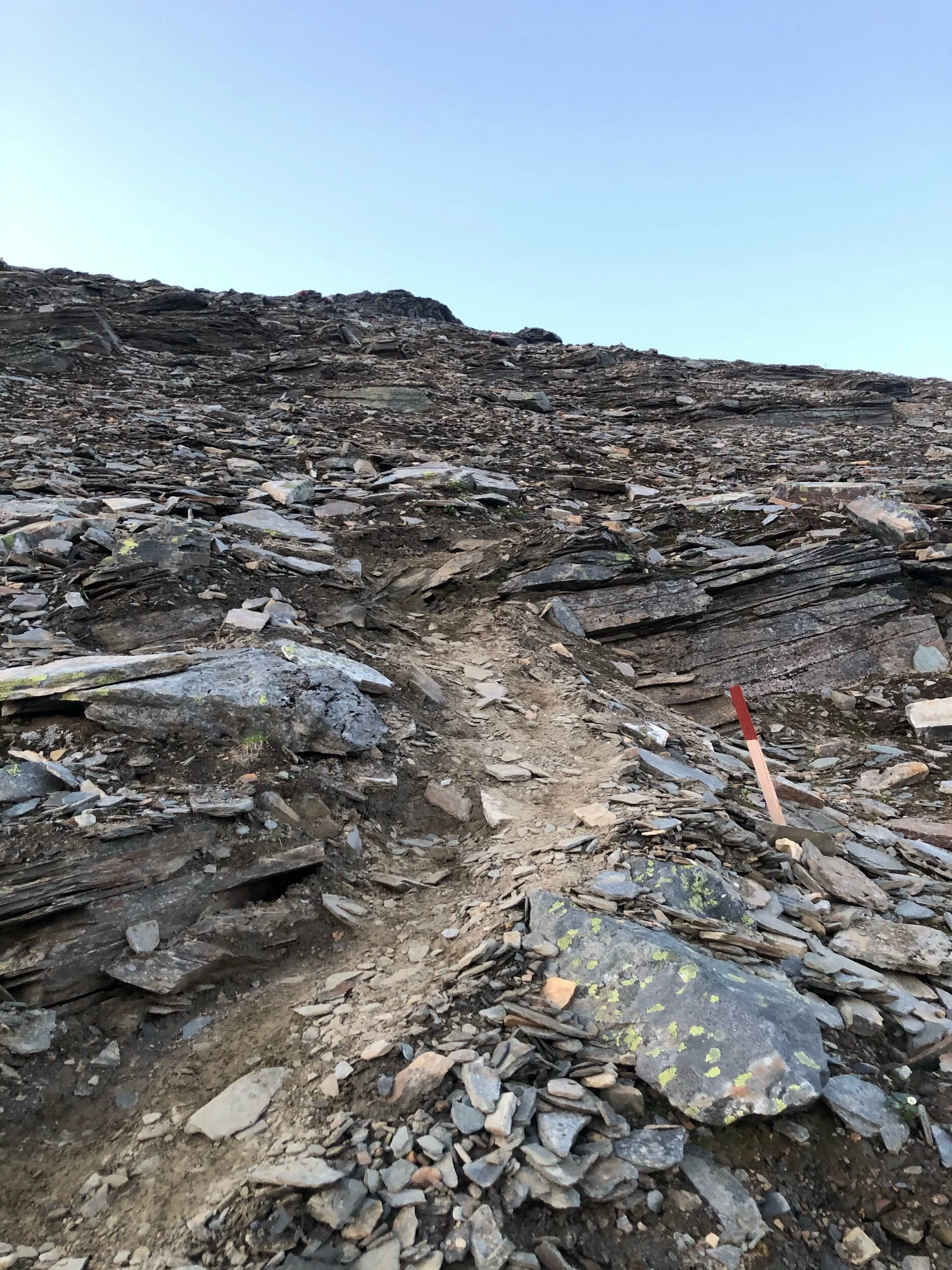 Det er litt stigning i starten før det flater ut i veldig flott åpent turterreng bestående av lyng. Godt er det, for det er en nokså lang anmarsj før man begynner på selve fjellet, som de siste ca 3-400 høydemeterne består av mye porøs løs småur.